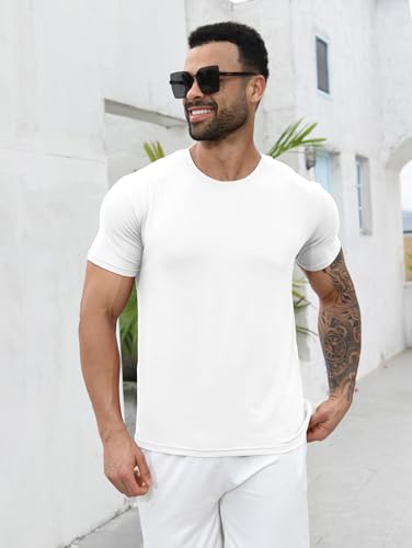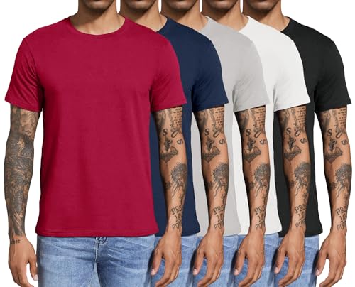 Baumwolle T-Shirts 4 Pack für Herren Workout Fitness | Kurzarm Rundhals T-Shirts 3 Pack Baumwolle Sport Herren | Baumwo